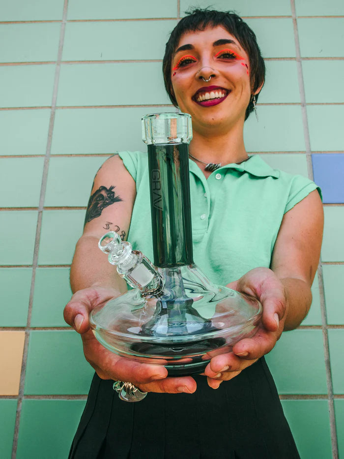 Enhance your dabbing experience with the GRAV Hourglass Banger Set! Constructed from premium quartz material, this banger has a beveled top edge compatible with the marble style carb cap. The banger's thick bottom ensures lasting heat retention and the fully welded, seamless joint promotes longevity no matter how often you dab. This bucket's inward curvature creates a distinct hourglass silhouette designed to function well for those who prefer cold start dabs, preventing concentrate from slurping up the sides before fully melted. Angled port holes are on the side walls of the bucket to create a spinning airflow; this vortex twirls the two quartz terp pearls around within the bucket to stir melted concentrate for maximum vaporization. Each banger has a 14mm male joint connection size and a 90 degree joint angle.