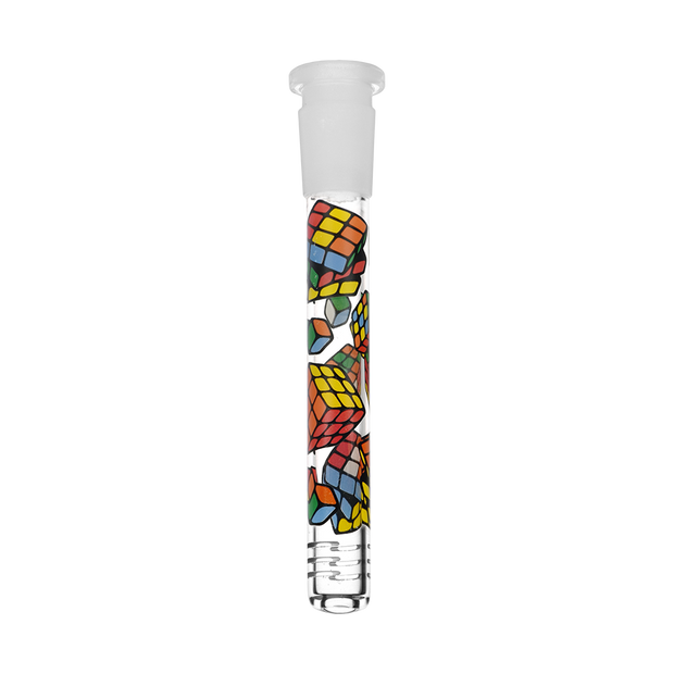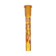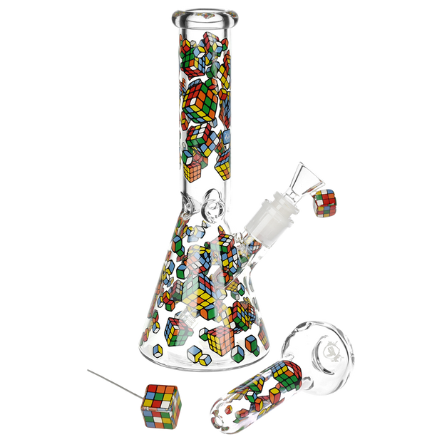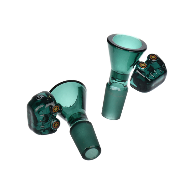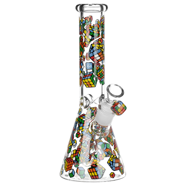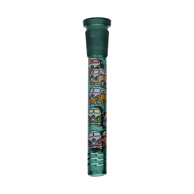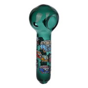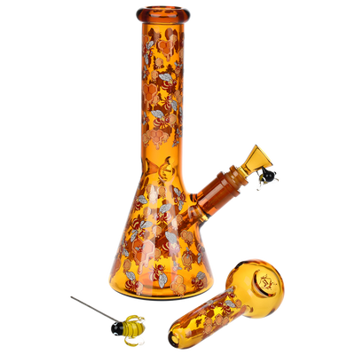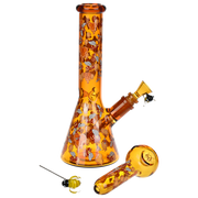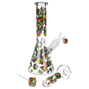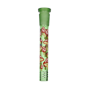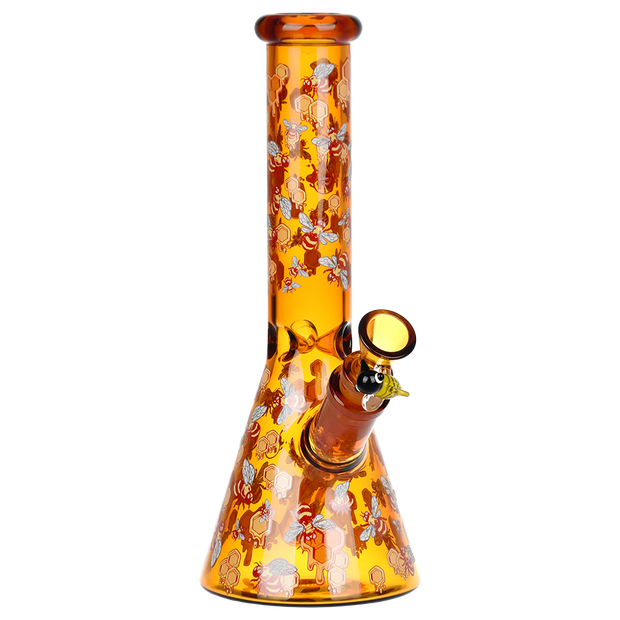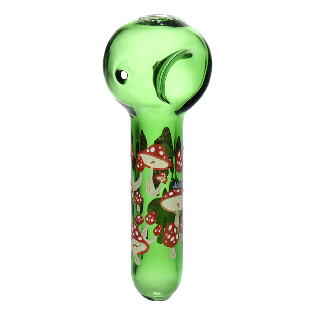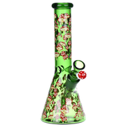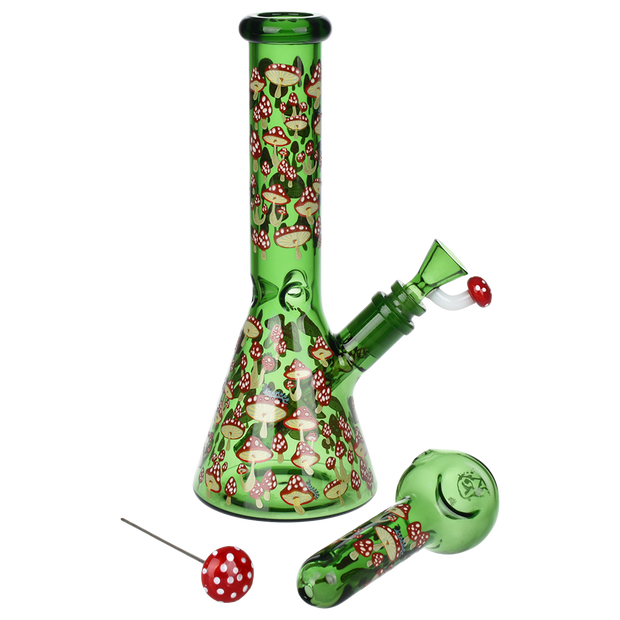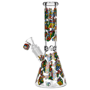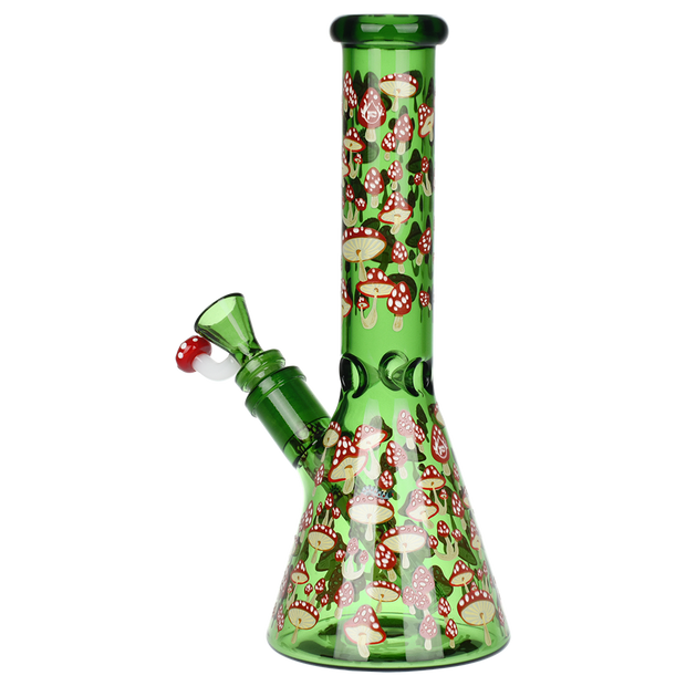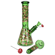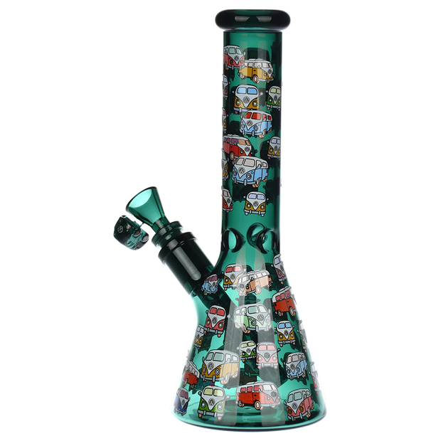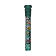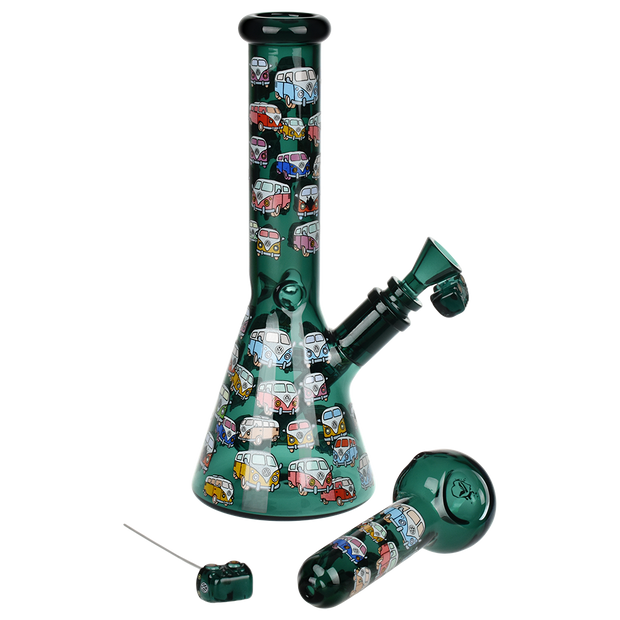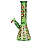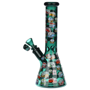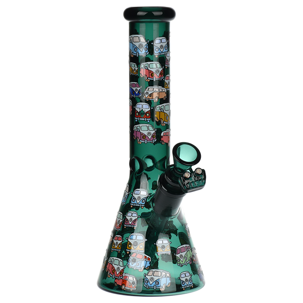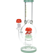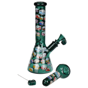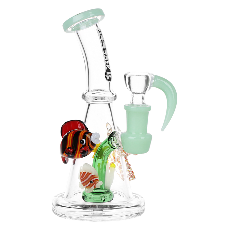 Ride the rip tide with a fresh hit from the Pulsar Just Keep Swimming Bong! Made from premium borosilicate glass, this compact water pipe has a conical chamber with a thick base. Smoke flows through the stemless joint connection into the perforated disc percolator for bubbly water filtration as you inhale. A bent neck design also keeps the flame away from your face as you light the bowl. Striped fish, starfish, and jade green glass accents decorate this piece with breezy ocean whimsy. Each bong includes a 14mm male herb slide with a matching green horn handle.
