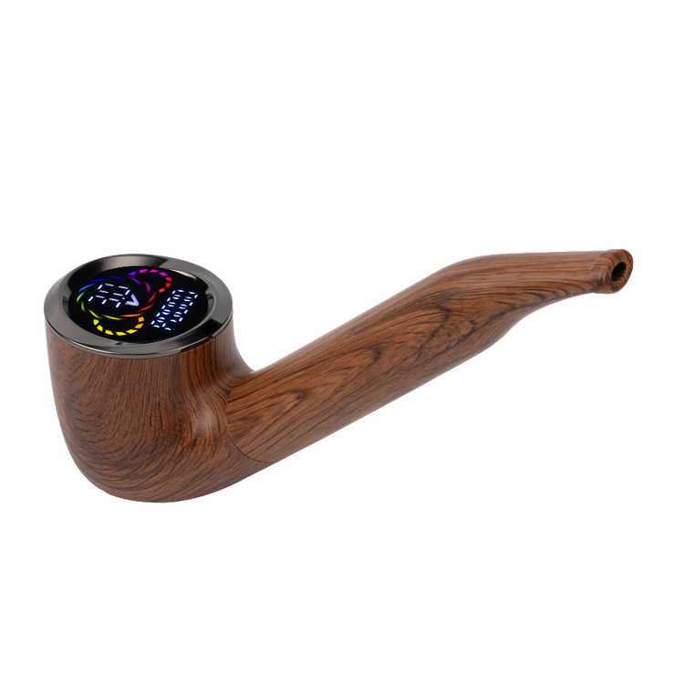 Whether you're seeking the perfect lo-fi lounging accompaniment or a true smoking spectacle, this vaporizer is adaptable to any mood with its two interchangeable stems. Faux wood grain patterning all around the body evokes feelings of a true hand-carved pipe equipped with new age technology. This unit's battery is concealed in a rounded housing for the base, which connects to any 510 cartridge with universal threading. This upgraded edition allows space in either stem for larger cartridges up to 2mL so you can go longer without having to switch out.