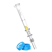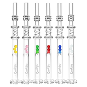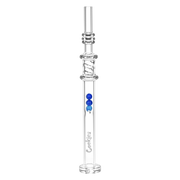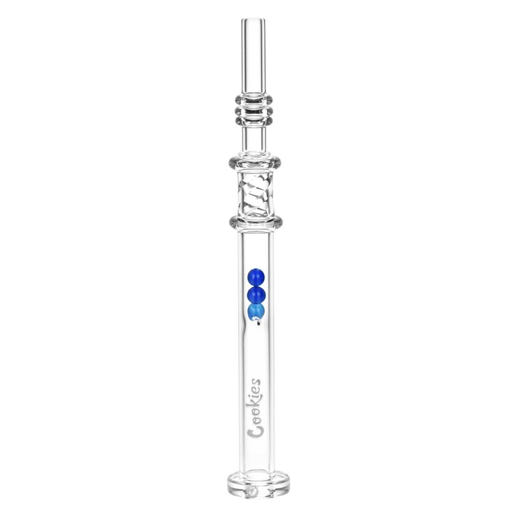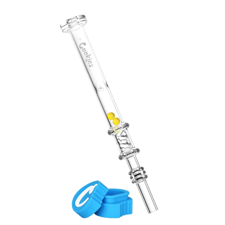 Put a spin on your next sesh with the Cookies Honey Twist Dab Straw Set! It includes a clear borosilicate glass dab straw and a silicone concentrate container. The dab straw has an integrated glass tip and a built-in twist diffuser, creating a spiral airflow as you inhale. This not only helps cool vapors for a more enjoyable hit, but also spins the three interior marbles for a fun visual effect! The concentrate container has the classic Cookies logo on top with their signature bite mark indentation on the side. Sold individually.