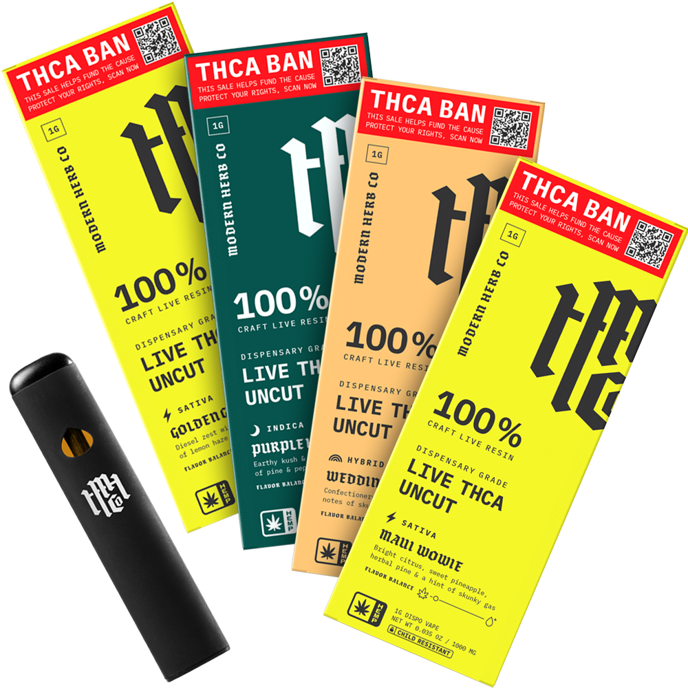 The Live Resin Uncut THCA Disposable Vape from Modern Herb Co delivers the closest thing to smoking fresh flower — in a sleek, ultra-convenient 1g disposable vape. Potent hits are just a breath away with this ready-to-use unit that's rechargeable, no extra accessories or pods needed. With the SAVE THCA series, every device purchase funds efforts to protect your right to saft, legal cannabinoids.