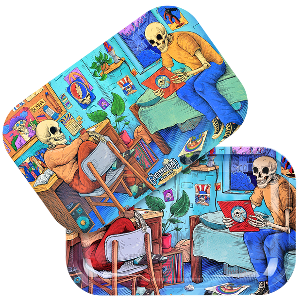 Grateful Dead Straight Tube Bong, Ash Catcher, & Rolling Tray Bundle