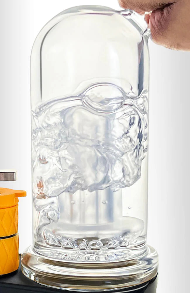 Harness the power of this dynamic duo with the BOMB Sykloud eRig & Hot Knife Set: the ultimate dabbing companion with its trusty sidekick! This electric dab rig is portable in size yet potent in its delivery. The borosilicate glass bubbler attachment has a UFO percolator for tons of bubbles and water filtration to cool vapors rapidly. This device is equipped with an advanced atomizer that has a ceramic chamber for even heat distribution. Its 22mm deep size also allows for larger dabs and milky vapors. Encased in a silicone sleeve, the atomizer comes with the brand's fidget spinner carb cap and tether attachment.