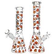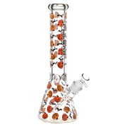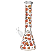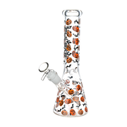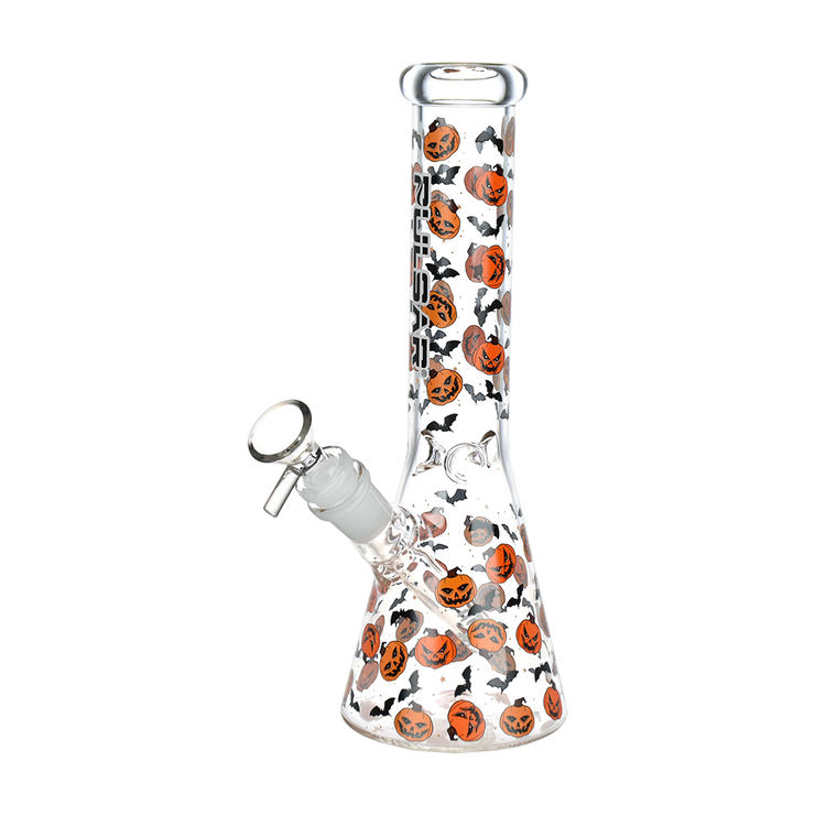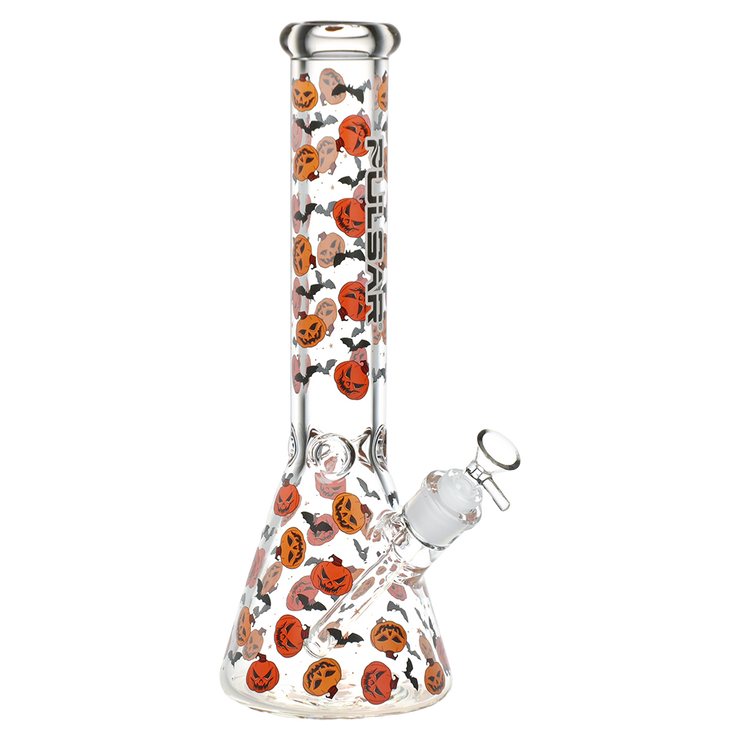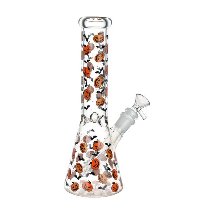 Fill your next smoke sesh with the Halloween spirit when you pack a bowl in the Pulsar Jack & Batty Beaker Bong! Made from thick clear borosilicate glass, this pipe is designed for big rips of smoke with the high-capacity chamber. The slitted downstem diffuser provides thorough rumbling water filtration while a 3 pinch ice catcher is built into the neck for rapid cooling power. Cackling jack-o-lanterns and shrieking bats adorn the outside, perfect for the spooky season! Each bong includes a separate downstem and a 14mm male herb slide.