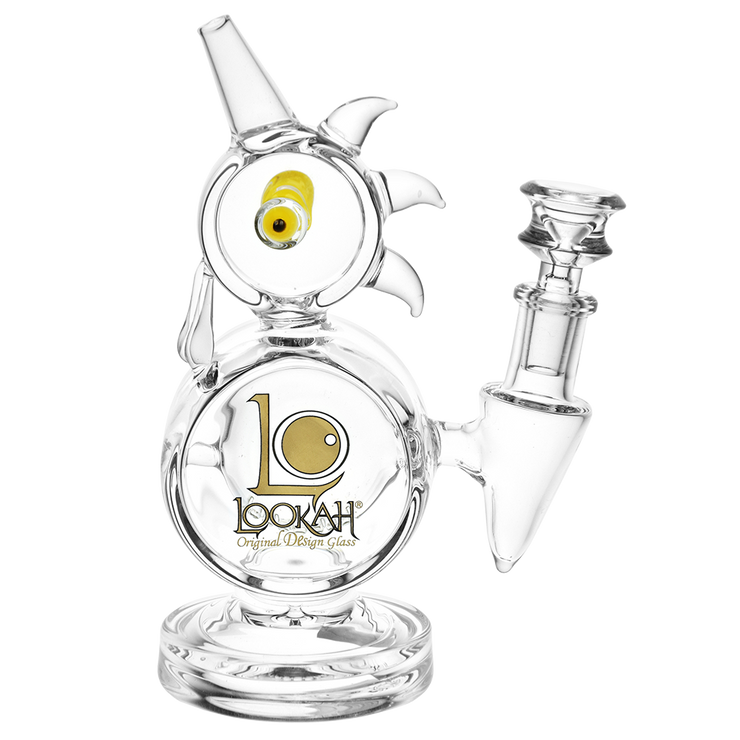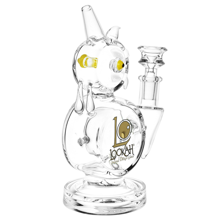 Get awesome rips from the Lookah Rooster Bong! Made of quality borosilicate glass, this awesome pipe is meant for more than just the barnyard. It has a stemless joint connection and a hybrid disc showerhead percolator for ample water filtration. The puck style chamber is elevated on a thick glass pedestal base while the neck and mouthpiece are made to look like a crowing rooster's profile. Each bong includes a 14mm male herb slide. Multiple colors are available.