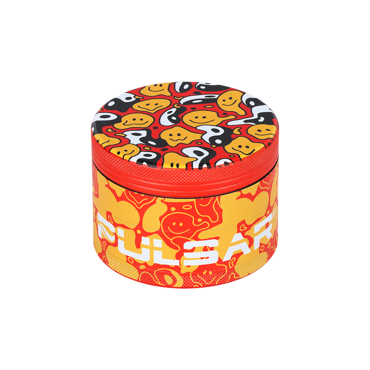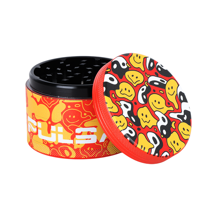 Grind your herb just the way you like with the Pulsar Design Series Metal Grinder! Made from durable metal, it measures 2.5 inches wide and is comprised of 4 pieces. The solid top displays the Yin Yang Y'all design, filled with melting smiley faces and good vibes so you can find your inner harmony. This newer line of grinders has a magnified view of each design extended down the sides for a vibrant, high end finish.